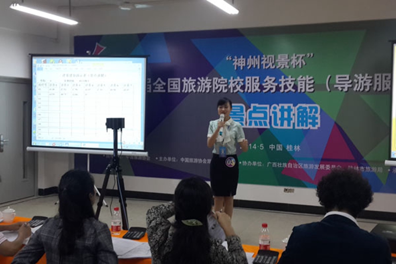 此次大赛是由中国旅游协会旅游教育分会主办,由桂林旅游高等专科学校承办。共有来自全国324所各类旅游院校的将近1000名选手参加了此次大赛。此次大赛得到了经济管理学院领导的高度重视和支持,派出了以旅游管理系主任赵希勇老师为领队、以苏金豹老师为教练、以及2011级旅游管理专业学生4人参加此次大赛。此次大赛共分四个环节,分别是理论课考试、景点讲解、回答问题和才艺展示。选手们在将近两个月的时间里,认真复习、刻苦训练,取得了两个二等奖和两个三等奖的好成绩。通过参加此次大赛,提高了我校声誉、促进了我校旅游管理专业教学水平和学生导游服务技能的提高。(苏金豹)