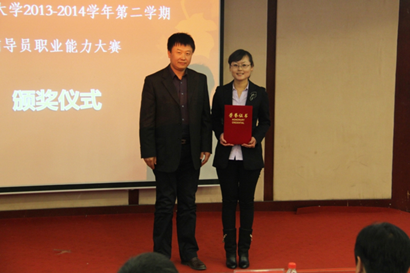 17位选手经过2天3个环节的比拼,最终评选出一等奖1名,二等奖2名,三等奖3名。我校2013-2014学年第二学期辅导员职业能力大赛的成功举办,既是对2013级辅导员和2013年新入职辅导员工作水平和个人能力的一次检验,也是对整个辅导员队伍的一个鼓舞和激励。今后,我们将进一步开拓思路,不断创新,进一步提升辅导员的职业化、专业化水平,使我校的辅导员队伍建设不断迈向新的台阶。(文:黄臻/图:郝元朔)