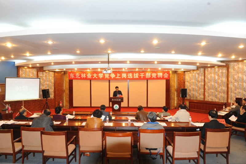 按照《东北林业大学竞争上岗选拔后勤服务总公司副总经理工作方案》、《东北林业大学竞争上岗选拔园林学院副院长工作方案》、《东北林业大学竞争上岗选拔森林植物生态学教育部重点实验室副主任工作方案》的有关程序和要求,经过网上报名、资格审查及报名人员所在单位民主推荐和民主测评等程序,4月16日,学校在动资楼331会议室举行了竞争上岗选拔干部竞聘会。共有24名竞聘人参加了上述岗位的竞聘。由学校部分两委委员、教师代表、学生代表、相关单位负责人和竞聘岗位所在单位班子成员组成的评议组以及自愿旁听的教职员工参加了会议。