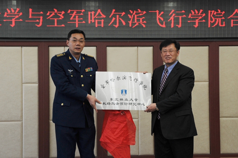 仪式上,空军哈尔滨飞行学院后勤部部长陆纪荣与我校科学技术研究院副院长应天玉分别代表双方签署“机场鸟击预防”合作协议。空军哈尔滨飞行学院副院长马赛与我校党委书记吴国春共同为“空军哈尔滨飞行学院东北林业大学机场鸟击预防研究中心”揭牌。