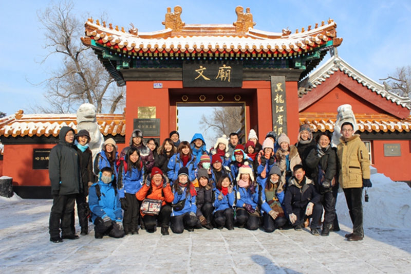 为使台湾同胞更好地了解寒地黑土文化,感受改革开放给哈尔滨在政治、经济、文化等方面带来的变化,12月23日到26日,在学校的安排下,营员们近距离亲身体验哈尔滨,在历史和现代中解读这座边疆文化名城。在黑龙江省博物馆,营员们更加全面地了解了东北的发展历史以及边疆地区的民俗文化;在文庙,营员们再一次感受到中国儒家文化的博大精深,体会到儒家文化的精髓;在东北虎林园,很多营员们第一次结识可爱的东北虎。在百年老街中央大街,营员们感受到了哈尔滨的商业气息和哈尔滨人特有的城市文化,中央大街独特的欧式和俄式建筑,使营员们流连忘返。为让营员们了解东北林业大学的文化特色,学校组织营员们参观了森林博物馆,各种馆藏作品让营员们对森林文化和林业大学有了新的认识;在野生动物资源学院的野生动物毛皮标本馆,珍贵的毛皮让营员们大开眼界,在老师的讲解下,他们第一次看到并触摸到毛皮。