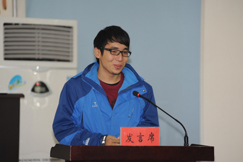 屏东教育大学吴勤荣老师发表讲话,他首先代表台湾师生对东北林业大学为冬令营所做的精心准备和所付出的辛苦劳动表示感谢,他认为举办此次冬令营是加强两岸大学生沟通交流的良好机会,希望能在东北林业大学度过一段难忘的愉快时光。