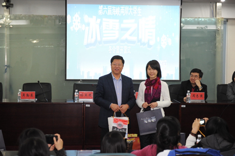 2013年12月23日上午9点,我校第六届海峡两岸大学生冰雪之情冬令营开营式在综合办公楼11楼会议室隆重举行。我校副校长孙正林、台北大学雷淑仪、屏东教育大学吴勤荣及我校港澳台办公室和学生处的主要负责同志出席了开营式。仪式由学生处副处长李玉荣主持。