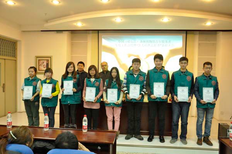 2013年12月13日,中国(哈尔滨)森林博物馆青年志愿者年度工作总结暨“优秀科普志愿者”表彰大会在东北林业大学外国语学院1019室隆重举行。学生资助管理中心主任、学工部副部长、学生处副处长李玉荣,校团委宣传部指导教师侯利军,中国(哈尔滨)森林博物馆馆长潘建平,副馆长李健伟以及馆内全体教师和博物馆的志愿者们参加了本次大会,会议由森林博物馆刘欣老师主持。