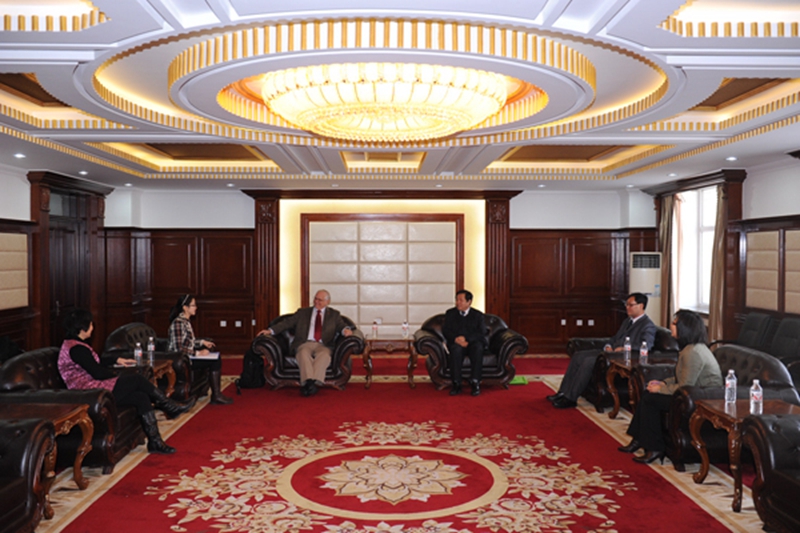 12月17日上午,曹军副校长在综合办公楼第七会议室会见了前来我校访问讲学的美国德克萨斯州州立大学奥斯丁分校David Lee Bourell教授。机电工程学院院长宋文龙、副院长郭艳玲,国际合作处副处长、国际交流学院副院长骆颖参加会见。