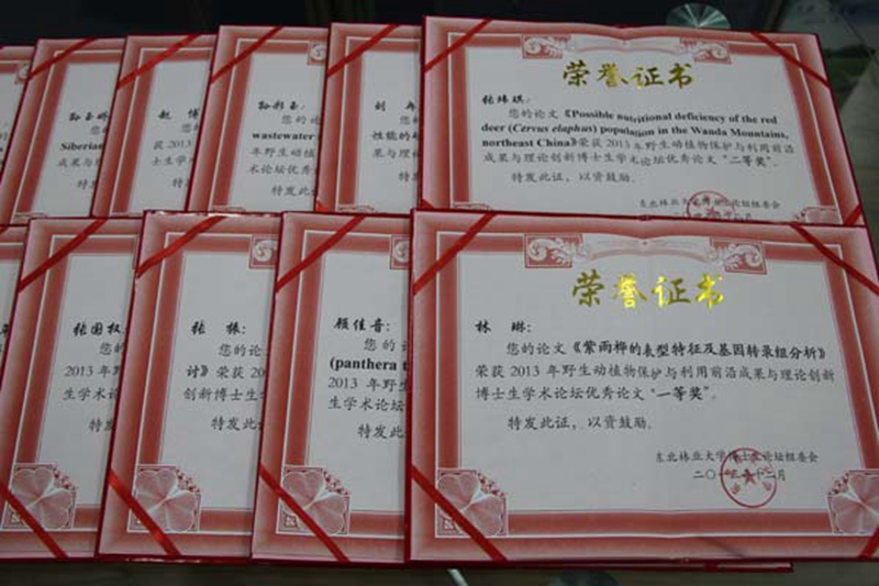 由黑龙江省教育厅、东北林业大学主办,我校研究生院、野生动物资源学院承办的“2013年野生动物保护与利用前沿成果与理论创新博士生学术论坛”于12月14日在我校国际会议厅成功召开。此次论坛吸引了来自中国林业科学研究院、东北农业大学、南京林业大学、中南林业科技大学、华南农业大学等全国14所高校及科研院所的300余名教师、博士、硕士研究生参加。