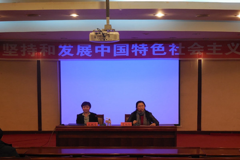 王越芬教授围绕主题从中国特色社会主义的内涵、一定能坚持好发展好中国特色社会主义、坚持好发展好中国特色社会主义的蓝图三方面对党的十八大报告和十八届三中全会提出的坚持和发展中国特色社会主义进行了系统阐述和深入解读,使教师们进一步提高对新形势下党面临的 “四大考验、四大危机”的认识,深刻理解只有坚定理想信念,增强宗旨意识,树立 “三个自信”,坚持改革开放,坚持经济建设、政治建设、文化建设、社会建设和生态文明建设等五位一体的中国特色社会主义发展道路,才能最终实现伟大的中国梦。王教授以丰富的知识内涵和鲜活的实例,旁征博引,深入浅出,为教师们作了生动的学习辅导,对学习贯彻十八大精神,深入开展群众路线教育实践活动具有很强的指导性、针对性和启发性。