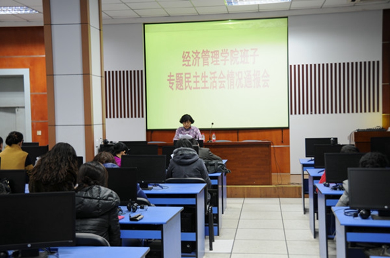 12月11日下午,经济管理学院在文管楼一楼会议室召开了学院班子专题民主生活会情况通报会。学院党委书记高玉娟代表领导班子做专题民主生活会情况通报。学院全体教职工参加了会议。