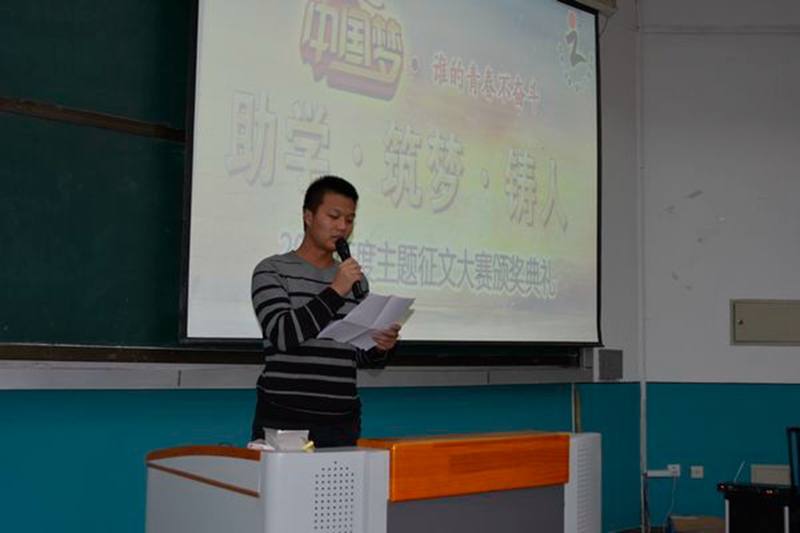 近日,2013年度“助学·筑梦·铸人”主题征文大赛颁奖仪式在锦绣楼T301室如期举行,学生资助管理中心主任、学工部副部长、学生处副处长李玉荣,征文大赛获奖代表以及近200名学生参加了本次活动。活动由学生资助管理中心梁江主持。