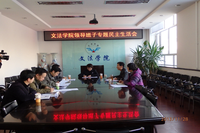 11月28日下午14时,文法学院以“践行群众路线,改进工作作风,促进学院科学发展”为主题的党的群众路线教育实践活动班子专题民主生活会,在学院会议室召开。学校党委副书记、纪委书记陈文慧,党校常务副校长、组织部副部长尹剑锋到会指导。学院全体班子成员参加了会议,会议由文法学院党委书记高春光主持。