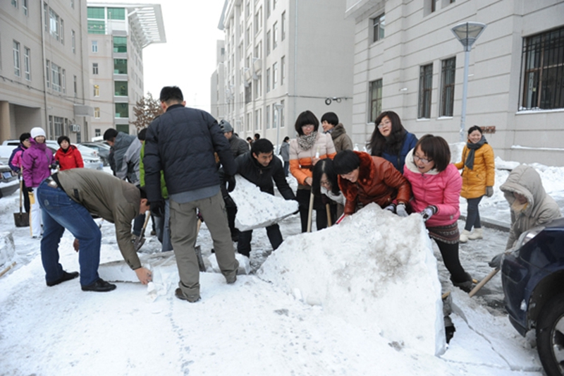 日前,50年一遇的暴雪造成哈尔滨市区残雪大量堆积,我校因校园面积较大,清雪任务也比较重。针对这一情况,与会教职工听完讲座后,拿起清雪工具,用了近两个小时的时间将综合办公楼与图书馆之间的道路清扫了出来。用实际行动践行了党的群众路线教育实践活动“为民、务实、清廉”的主题思想,把为师生服务、全员育人的理念落到了实处。(文:尹慧益/图:王乙)