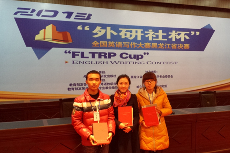 2013“外研社杯”全国英语演讲大赛黑龙江省决赛、写作大赛黑龙江省决赛分别在大庆师范学院、哈尔滨医科大学大庆分院隆重举行,来自全省38所院校的众多英语演讲及写作高手共同角逐两项重要赛事。代表我校参赛的五名同学均有上佳表现,在众多选手中脱颖而出。其中,土木工程学院的钟沛华同学荣获2013“外研社杯”全国英语演讲大赛黑龙江省决赛一等奖;外国语学院刘洋同学荣获2013“外研社杯”全国英语写作大赛黑龙江省决赛一等奖;外国语学院吴晓华同学以及机电工程学院的庄柏舟同学荣获演讲大赛黑龙江省决赛二等奖,理学院的马翔同学荣获写作大赛黑龙江省决赛三等奖,外国语学院王楠老师、柴静老师、祁玉龙老师、沈姗姗老师以及何晓松老师获得优秀指导教师奖,为我校争得了荣誉。