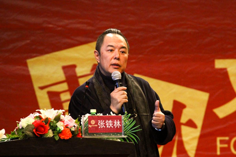 随后,张老师将更多的时间留与同学们互动交流,幽默风趣地回答同学们在网络平台及现场提出的各种问题。针对同学尖锐提出的“如何看待月考问题”,张老师结合自身中西方教育经历,阐述了中国高等教育的发展方向,认为大学学习是冲刺人生的重要一步,考试是必要和必须的,鼓励大家经受住“月考的重重考验”,取得学业的“大丰收”,博得了满堂掌声;他用“我们仨的追求不一样啦,王刚热衷收藏,忙于铁锤砸宝,张国立是工作狂,让他每天工作就开心了,我们也都老了,很难再合作了”来回应“‘乾隆帝’是否还有想法和‘和珅’、‘纪晓岚’再一次合作的问题”;当观众向他抛出“在学业与梦想之间何去何从”的问题时,他更是从一位慈父的角度鼓励大家:“专业并不能决定你的未来,你的任何决定都不要以伤害父母的心为代价,学林业的学生可以去画画,学医学的同样可以当警察”;谈及拍戏的趣闻与扮演皇帝的心得时,张老师表示演皇帝最容易,“越不说话越威严,越有帝王范”,并诙谐地将自己定位为“养尊处优,儿女情长,管理后宫琐事”的皇帝,张老师也自我调侃到,“出演皇上并不像你们看到的那样光鲜亮丽,可能在导演喊卡的下一秒就沦为盒饭都抢不到的‘可怜皇帝’”。讲座最后,张铁林先生挥毫泼墨为“东林文化大讲堂”题字留念。