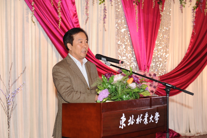 我校党委副书记胡万义在庆典上致辞。他首先代表学校党委和行政对参加庆典的老同志们表示祝贺。他说,东北林业大学一贯有尊老、敬老、爱老的传统,历届党政领导班子都想老同志之所想,急老同志之所急,一心一意、脚踏实地的努力做好离退休老同志服务工作。老同志们从工作岗位退下来以后,夫妻间举案齐眉,相濡以沫,生活中奉献余热,勤耕不辍,继续为构建和谐校园、和谐社会发挥着重要的作用,担任着学校党委组织部兼职组织员、关心下一代工作委员会委员、教学督导员等工作,以自己的实际行动展示着对社会主义事业无比坚定的信念,诠释了老有所学、老有所乐、老有所为、余热发光的人生真谛,学校将继续以深厚的感情在政治上多关心老同志,在思想上多沟通老同志,在生活上多照顾老同志,在精神上多关怀老同志,千方百计地做好服务离退休老同志的工作,竭尽全力使所有老同志都能过一个幸福安康祥和的晚年。