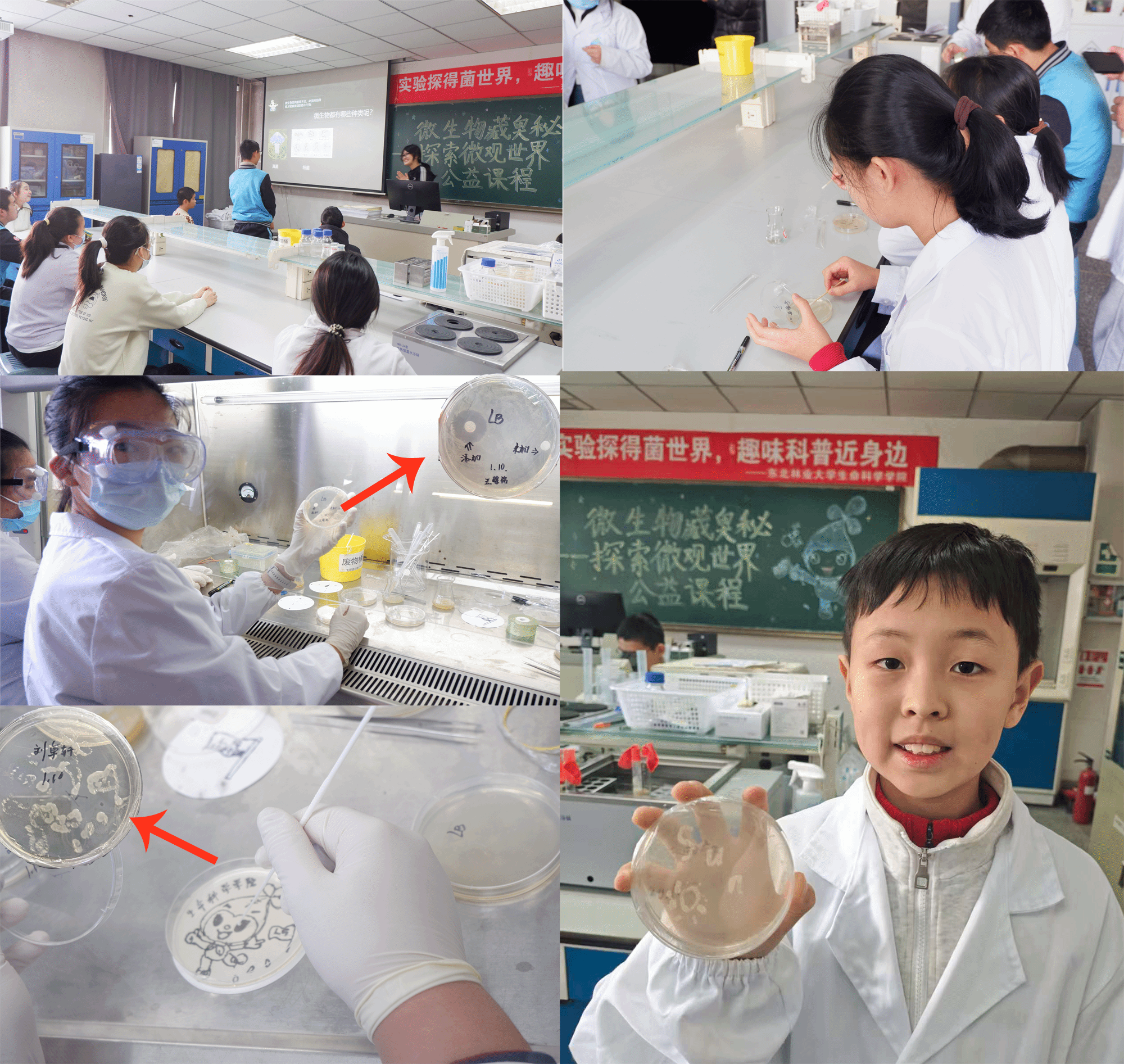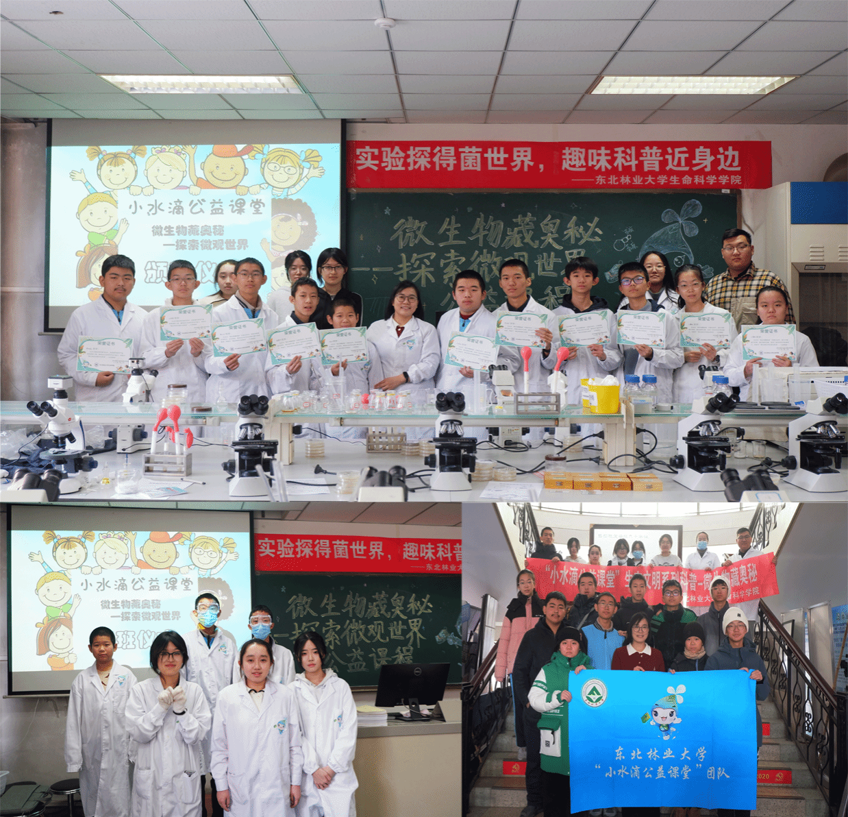 为深入践行习近平生态文明思想,进一步推进“小水滴公益课堂”生态文明号建设,激发青少年科学探索热情,1月10日至11日,生命科学学院“小水滴公益课堂”生态文明系列科普之“微生物藏奥秘”主题活动在逸夫教学楼举办。活动由生命科学学院教师赵娜、7名本研学生组成专业讲师团,18名哈尔滨市青少年参与其中,带领孩子们走进微生物的隐形世界,感受生命科学的独特魅力。