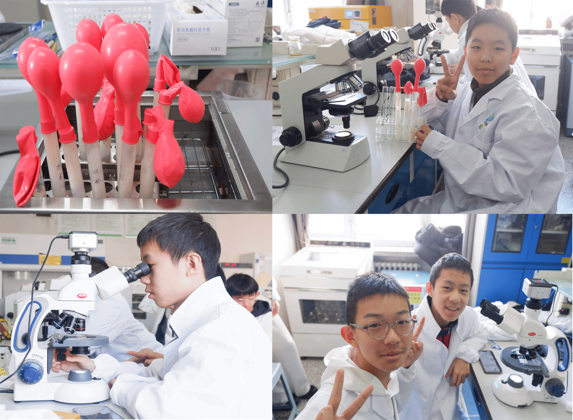 第二日课程围绕 “微观世界的奇妙互动”开展,“酵母宝宝的吹气大挑战” 实验中,青少年观察酵母发酵产气现象,探讨影响发酵的关键因素,提升观察分析与团队协作能力;“微观居民大点名”环节,讲师团详解显微镜操作要点并示范,青少年借助显微镜观察多种微生物,直观认识微生物多样性。