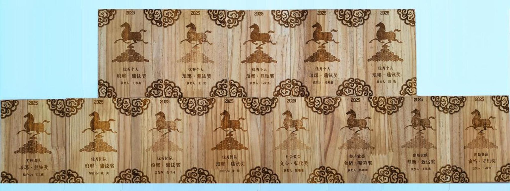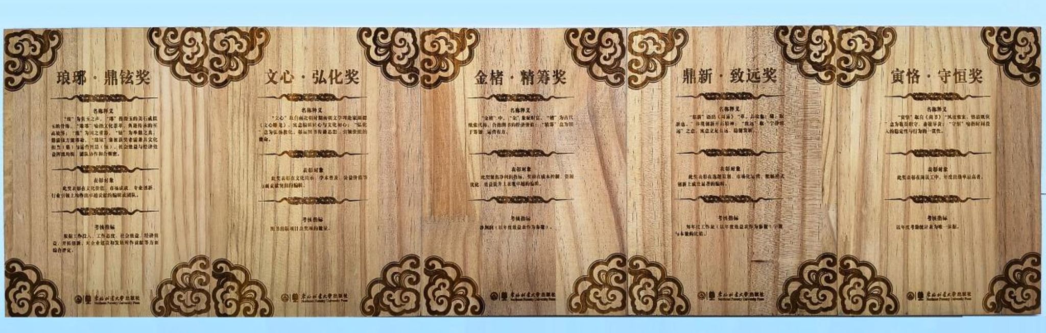 学校党委副书记翟雪峰、资产经营公司总经理陈立生和出版社社长宋福南分别为获奖团队和个人颁奖。该奖牌由我校家居与艺术设计学院全国教科文卫体系统示范性劳模和职工创新工作室创新团队(黑龙江省中国古家具工程技术研究中心)设计和制作,融合了中国传统蛇形纹簇与马踏祥云图,寓意我校出版事业跨越发展。