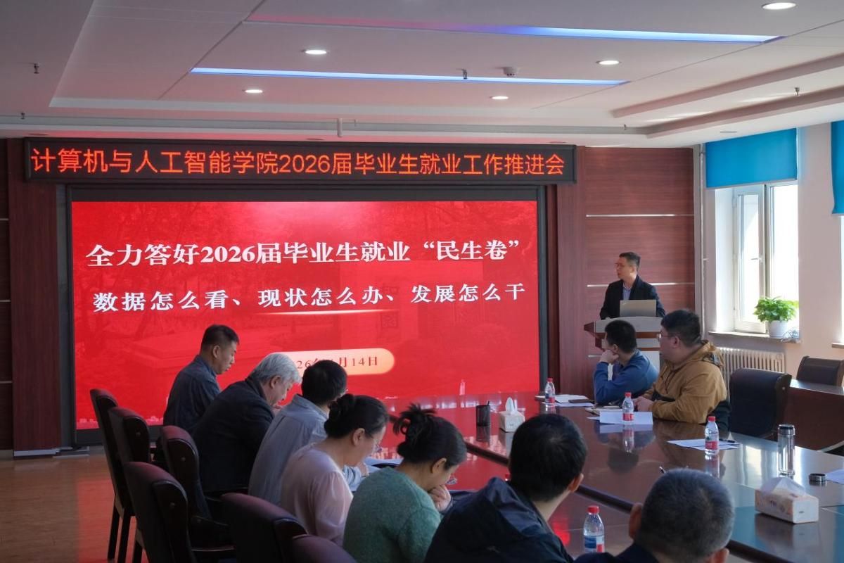 4月14日上午,计算机与人工智能学院在成栋楼1102会议室召开2026届毕业生就业工作推进会。学院领导班子、各学科负责人、专业主任及分管就业副主任、全体辅导员等参加会议。会议由学院就业办公室主任孙海龙主持。