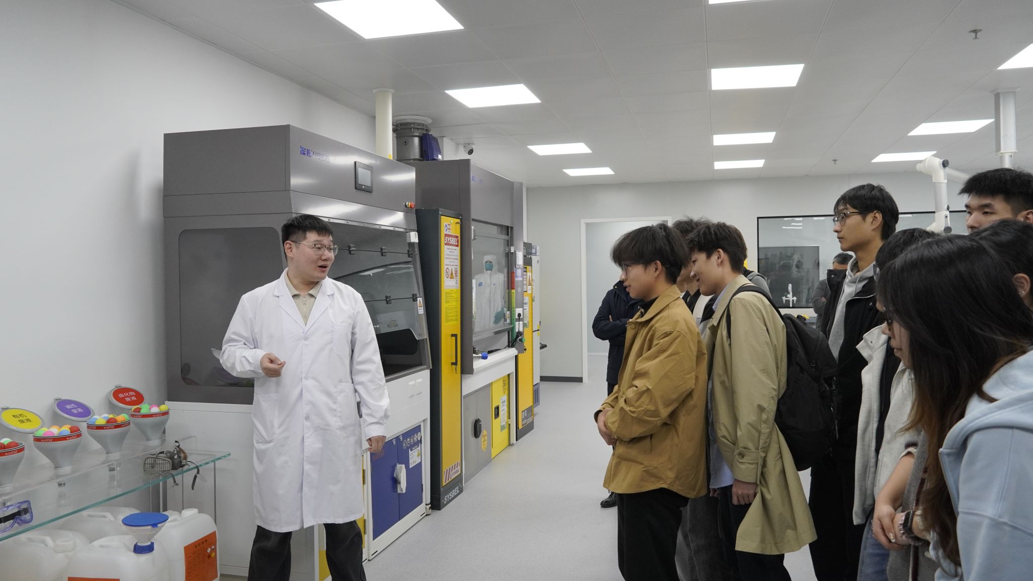 TRIGHT智能防爆型气瓶柜、自由组合式PE酸碱试剂柜、酸碱组合试剂存储柜、物联危化品储存仓、高速离心机、高压灭菌器……许多设备对于电信专业的师生来讲,都是第一次见、第一次接触,既新鲜又好奇,同时也为学校对实验安全管理的重视和投入点赞。尤其在个体防护区、应急处置和设备操作安全区,大家像开盲盒一样,试戴不同功能的手套、口罩、护目镜等设备,模拟演练了试剂泄漏、眼部受伤等应急情况处置,参与感和体验度极强。体验活动持续了近1个小时,大家受益匪浅。