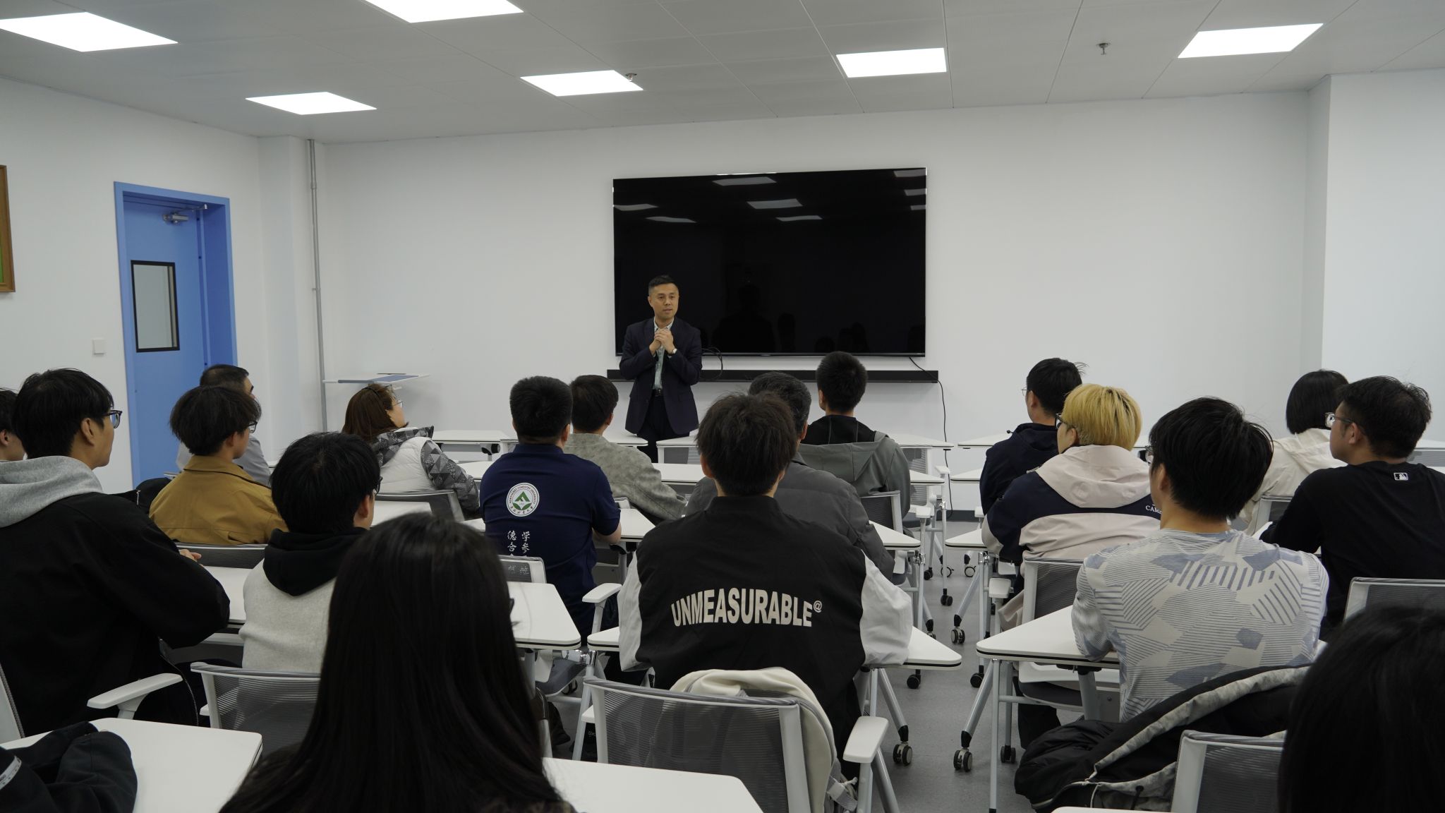 在EHS实验室教育实践体验中心,王佳彤介绍了今年全民国家安全教育日的主题“统筹发展和安全,护航‘十五五’新征程”,以及学校、学院安全活动月的相关安排。他表示,此次活动的设计与电子信息工程专业筹备认证相结合,既是一次主题党日,也是一次战前演练,更是一次育人实践,旨在教育引导师生将安全意识和安全技能入脑入心,真正在“统筹”上下功夫、用心思,护航学校、学院和个人的“十五五”新征程。
