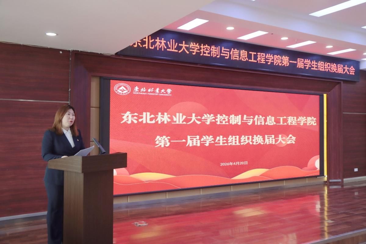 赓续前行担使命,奋楫扬帆谱新篇。4月20日中午,控制与信息工程学院在成栋楼11楼会议室,举行第一届学生组织换届大会。学院党委书记王佳彤、党委副书记兼副院长林岩、学院各学生组织指导教师及全体学生组织成员出席会议。会议由学院团委书记张音主持。