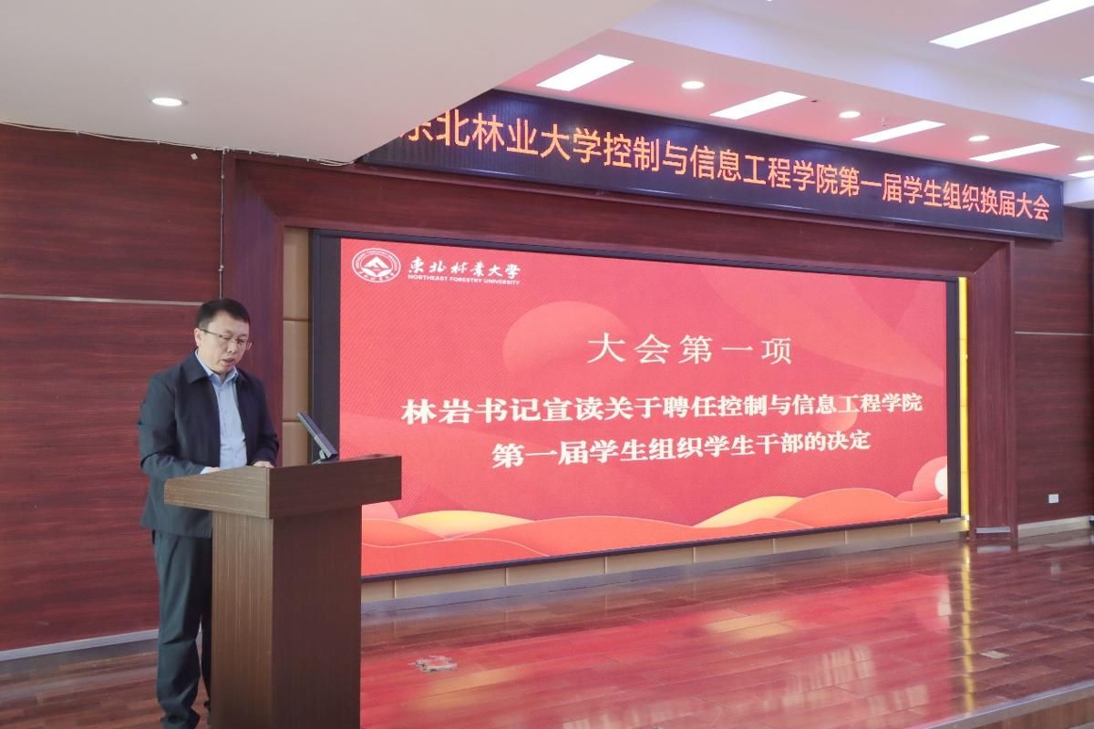 林岩宣读聘任第一届学生组织学生干部的决定。