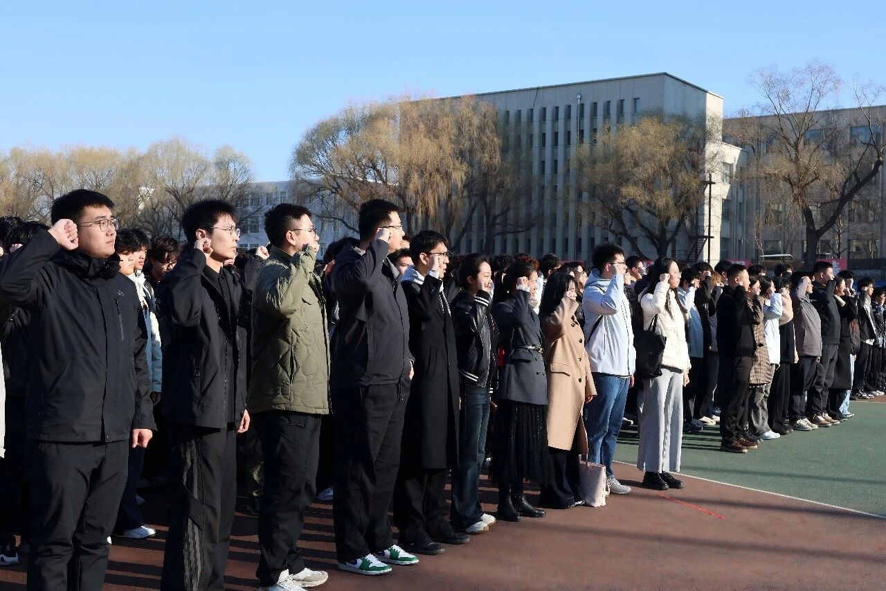 4月15日清晨7时,由党委学生工作部、校团委主办,机电工程学院、奥林学院、文法学院联合承办的“统筹发展和安全 护航‘十五五’新征程”主题升国旗仪式在学校田径场隆重举行。