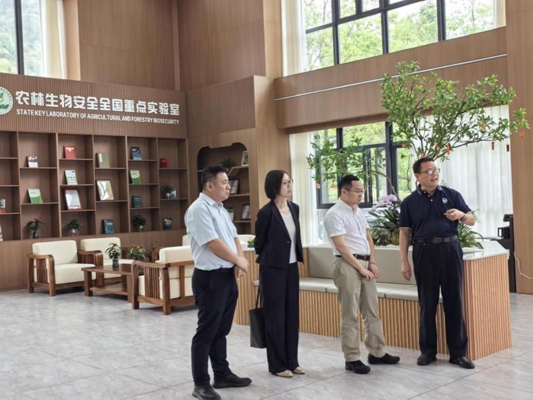 在农林生物安全全国重点实验室的参观中,实验室主任侯有明介绍了实验室以国家战略需求为导向,通过引进顶尖人才、多校协同攻关,实现高水平科研成果和高效能转化的路径。