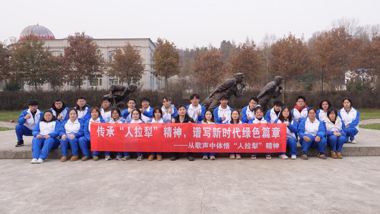 离开原址,师生党员前往帽儿山场部教学区,开展“从歌声中体悟‘人拉犁精神’”实践活动。王俊凯带领大家铿锵喊出《咕噜大绳号子》《抬木头号子》等传统森林号子,让党员们在劳动号子中感受“心往一处想、劲往一处使”的协作力量。全体党员齐唱校歌,激昂旋律传递着对先辈的敬意,让“人拉犁”精神在歌声中实现代际传承。