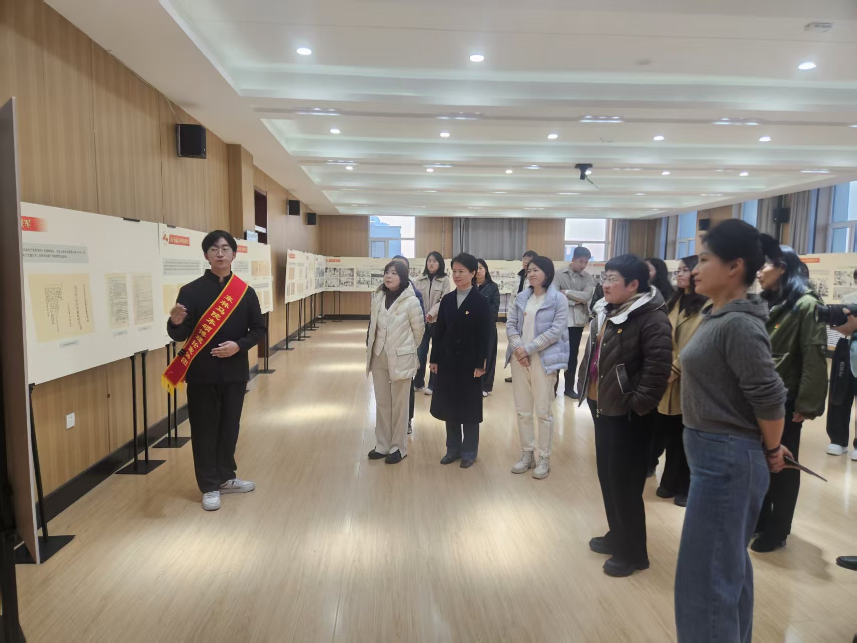 在展览现场,马克思主义学院院长于冰以详实的史料、生动的语言和富有感染力的表述,将一段段档案背后的故事娓娓道来,为全体党员上了一堂沉浸式的、触动心灵的党史教育课。马克思主义学院还选派学生讲解员作了全程讲解。