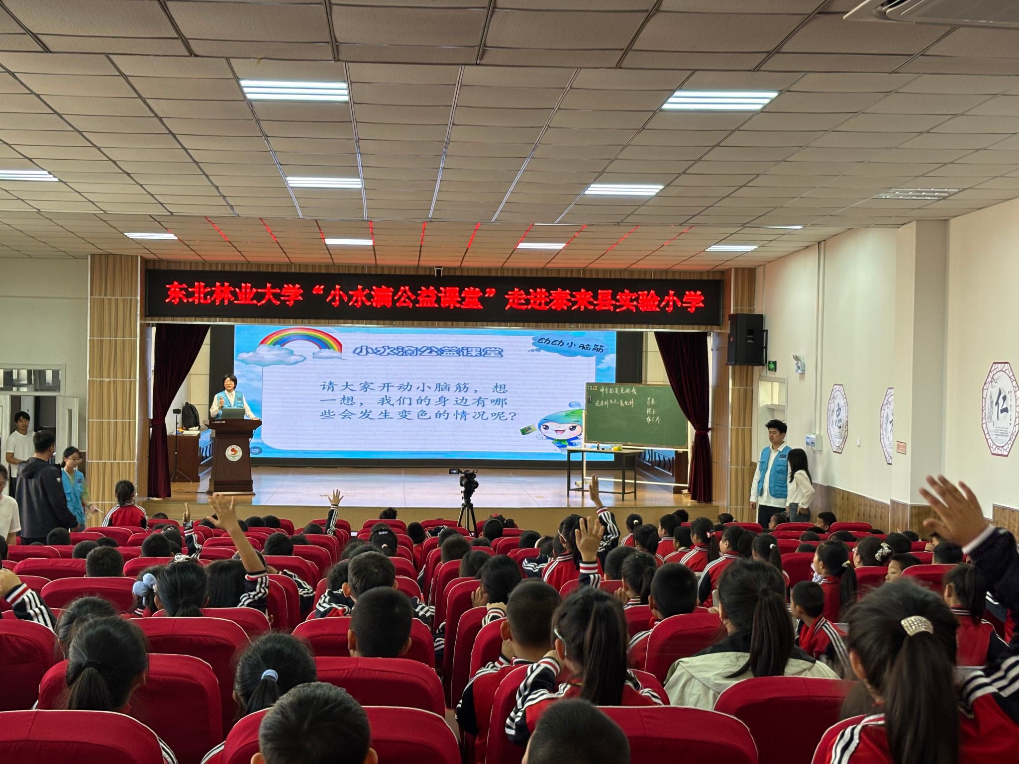 为深入贯彻落实《教育强国建设规划纲要(2024—2035年)》文件精神,对接国家乡村振兴战略,9月26日,生命科学学院“小水滴公益课堂”走进泰来县实验小学开展科普教育活动。此次科普课程首次采取公开课形式,超500名小学生参与。泰来县副县长黄英来,泰来县教育局副局长贾更山、教育一股股长陈秀伟、泰来县实验小学校长周光旭和团队指导教师丁晓萌参加活动。