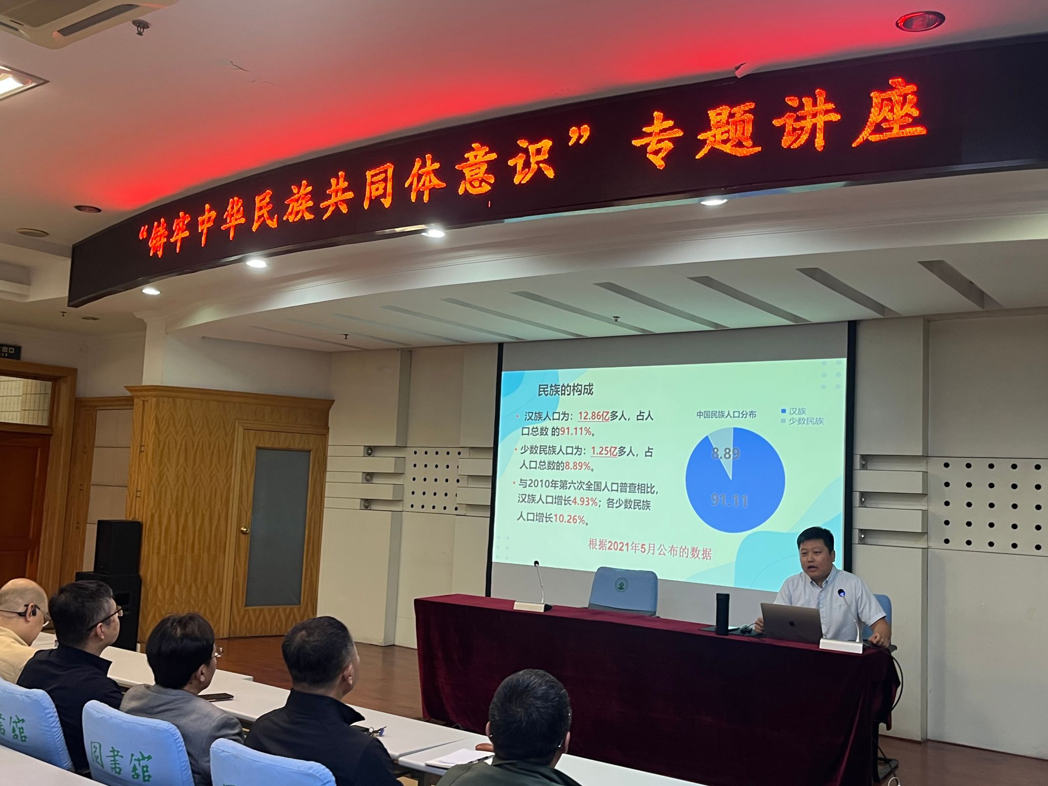 讲座中,周汉杰以“铸牢中华民族共同体意识”为核心,围绕其战略意义、丰富内涵及实践路径等多个维度,作系统而深刻的阐述与解读。他深入浅出地剖析了“多元一体”中华民族格局形成过程,并重点强调了“十二个必须”的根本遵循,以及增进“五个认同”的核心要义。同时,他还对树立“五个共同”理念、根植“四个与共”共同体理念、把握“四对关系”等内容进行了细致讲解。