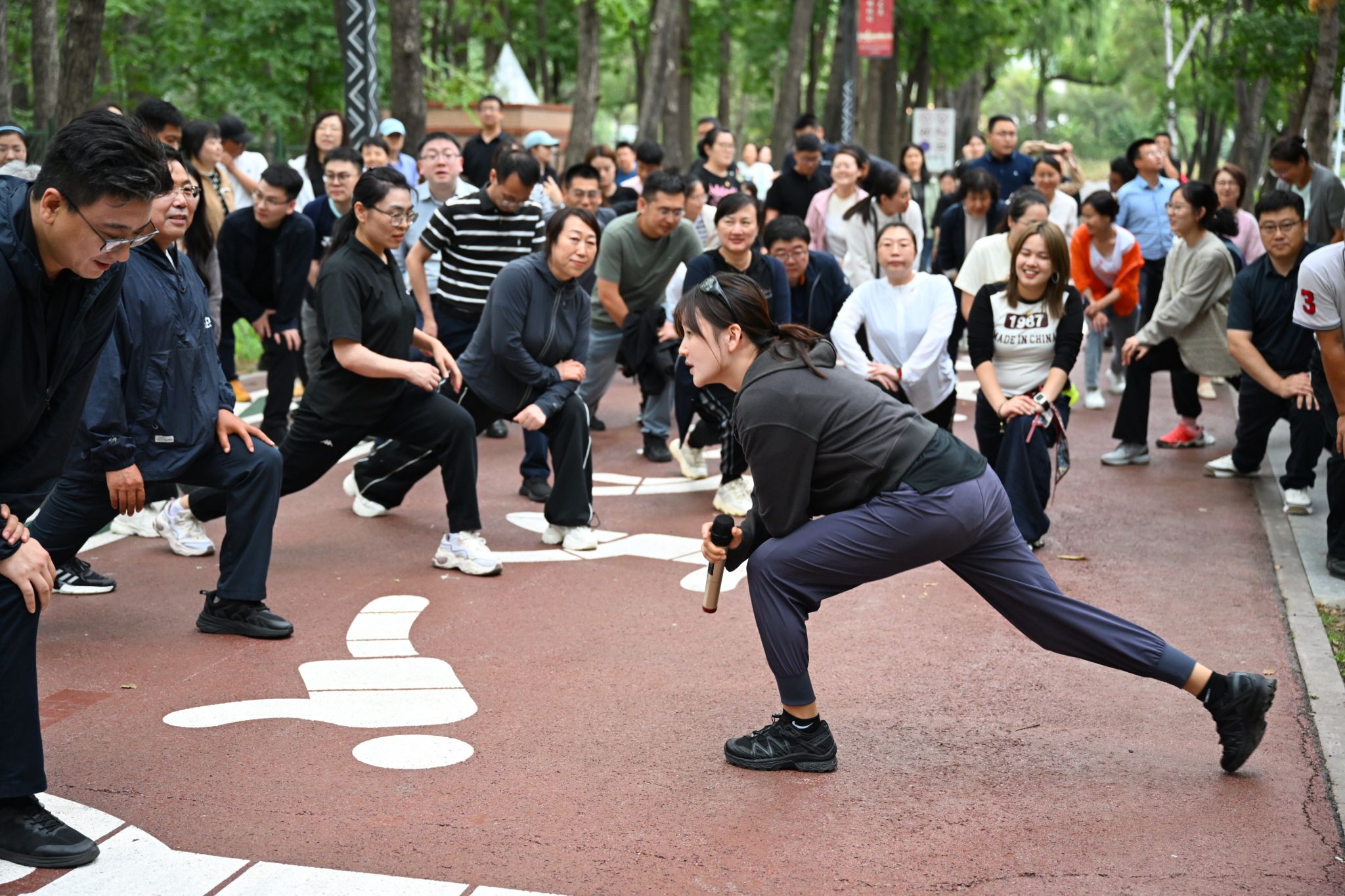 体育部教师孔令微带领大家完成专业的赛前热身。随着一声令下,大家开启了森林呼吸之旅。在静谧的林间,在崭新的跑道上,大家或轻盈慢跑感受负氧离子的清甜,或漫步闲谈欣赏林梢光影;驿站旁不时有参与者驻足休憩,与同事们分享运动乐趣。