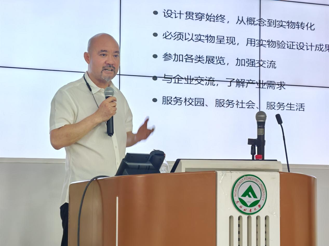 6月18日,家居与艺术设计学院邀请清华大学环境艺术设计系主任于历战教授做客“培元立极”学术论坛,作了题目为“概念与验证——清华美院家具设计教学实践”的学术报告。学院各学科带头人、研究生导师、2023和2024级硕士研究生近200人参加活动,报告会由学院副院长牛晓霆教授主持。