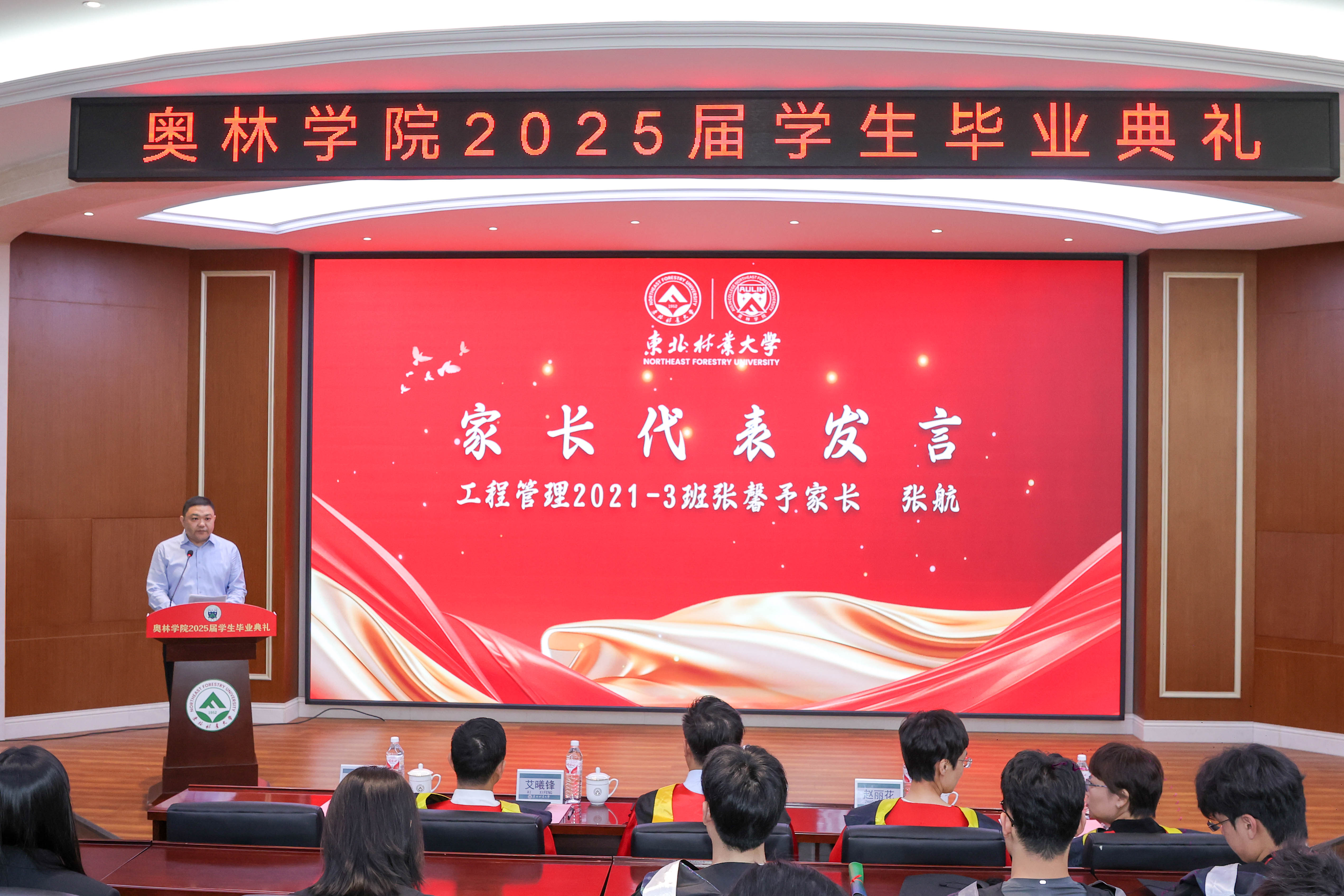 随后,毕业生家长代表、2021级工程管理专业3班张馨予同学的父亲张航向学院全体教职工表示感谢和敬意,并向即将踏上新征程的同学们送上最热烈的祝贺。