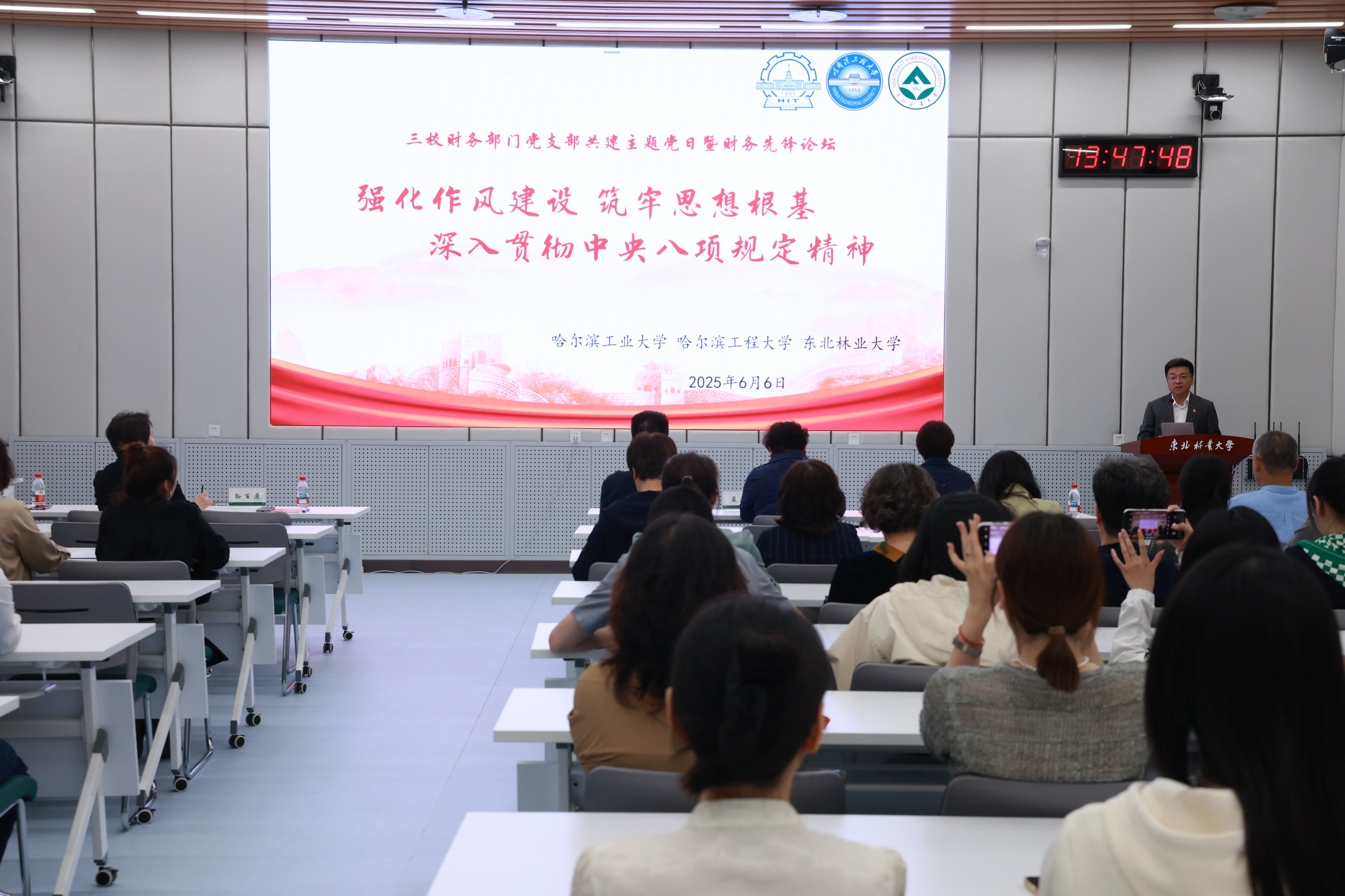 六月的东林,草木葱郁,芬芳沁润。6月6日,为持续深入推进教育财会队伍能力作风建设,推动深入贯彻中央八项规定精神学习教育走深走实,计财处联合哈尔滨工业大学、哈尔滨工程大学两校财务党支部共同开展了“强化作风建设,筑牢思想根基,深入贯彻中央八项规定精神主题党日暨第三届财务先锋论坛”活动。