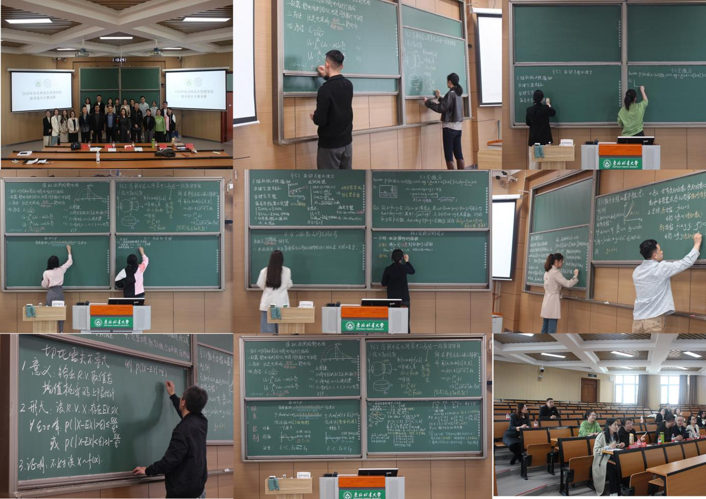 决赛现场氛围紧张热烈,参赛教师们各显神通,将严谨的理科知识与新颖的艺术构思巧妙融合。他们设计的板书不仅条理清晰、重点突出,实现了知识的有序梳理,还将课程思政元素巧妙地融入其中,达到了润物无声的育人效果。粉笔在黑板上流畅游走,沙沙的书写声与台下师生的赞叹声相互交织,营造出浓厚的学术与艺术氛围。经过激烈比拼,大赛评选出一等奖3名、二等奖4名、三等奖4名。赛后,这些优秀作品在锦绣楼方厅集中展出,吸引众多师生驻足观摩、学习交流,成为校园里一道独特的风景线。