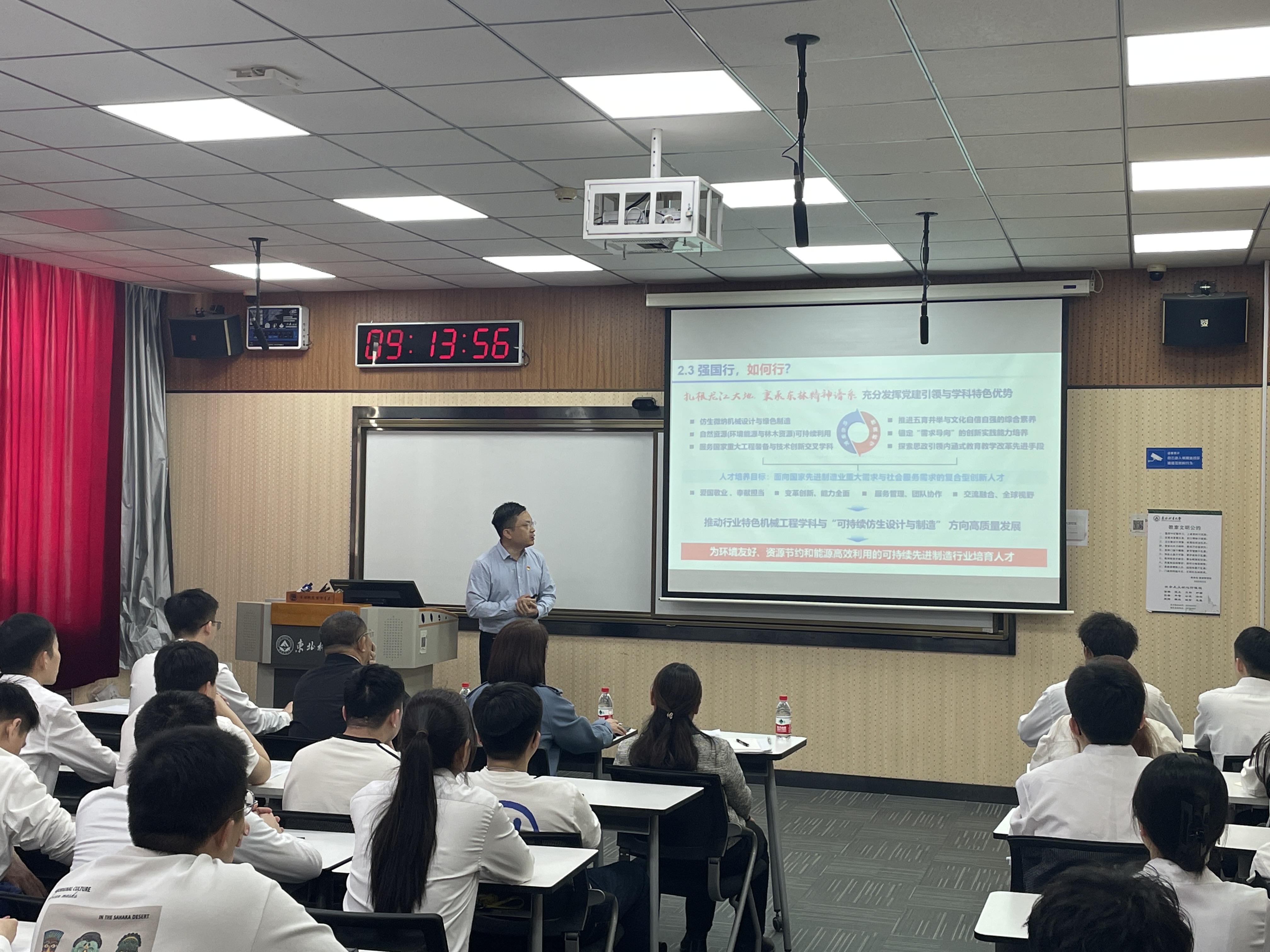 为高质量推进“强国行”专项行动,扎实开展深入贯彻中央八项规定精神学习教育,以优良党风促进优良学风,全力迎接即将开始的本科教育教学审核评估,4月29日上午9时,机电工程学院在奥林楼智慧教室举办了“强国行,我们行”主题党日。“双带头人”教师党支部书记“强国行”专项行动团队、机械设计制造及其自动化党支部,黑龙江省高校党建工作样板党支部、晨曦公益党支部,黑龙江省首批研究生样板党支部、博士研究生党支部师生代表共计60余人参加活动。活动由学院党委书记王佳彤主持。教育部党建联络员王延、学校党委组织部副部长李想受邀参加。