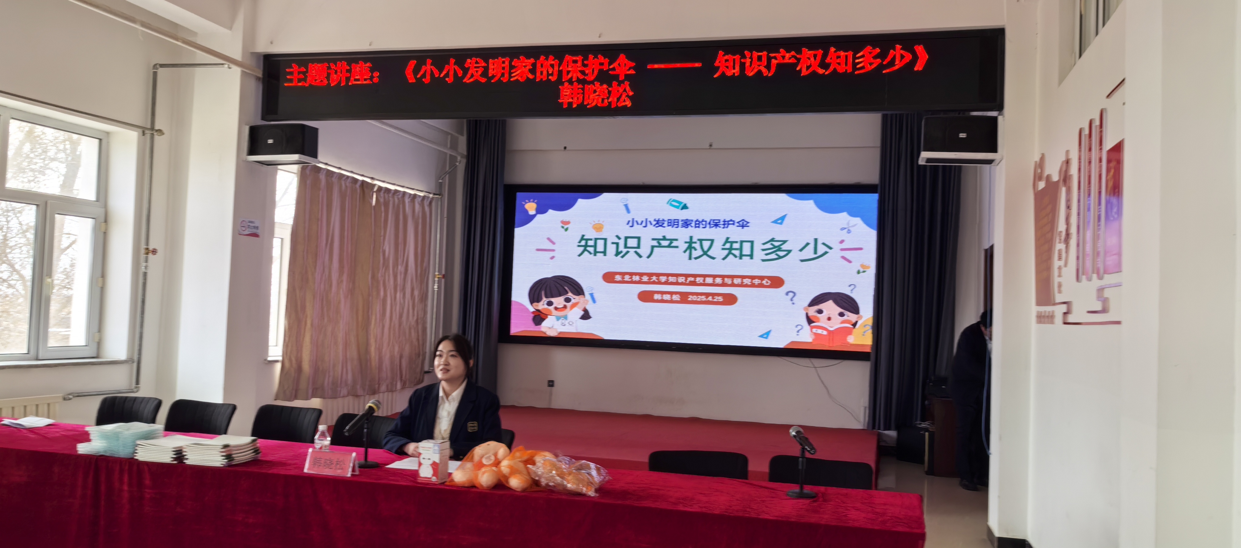 活动正值2025年全国知识产权宣传周,学校图书馆检索教研室讲师韩晓松面向同学们开展“小小发明家的保护伞—知识产权知多少”主题讲座,以生动有趣的案例和通俗易懂的语言普及知识产权相关知识,激发孩子们的创新意识和知识产权保护意识,为乡村学校的素质教育发展提供有益补充。