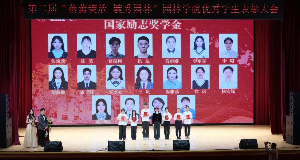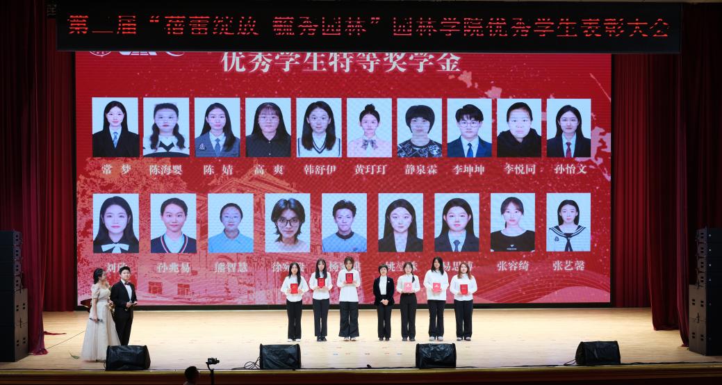 宋吉红向获奖学生表示了热烈的祝贺,向园林学院的学生们提三点希望:一是希望同学们坚定兴林强国志向,挺膺青年担当;二是希望同学们永葆求知创新热情,矢志追求卓越;三是希望同学们下足内外兼修功夫,砥砺高尚品行。她强调,同学们一定要牢记“学参天地、德合自然”的校训,真正成长为顶天立地、可堪大任的园林栋梁。