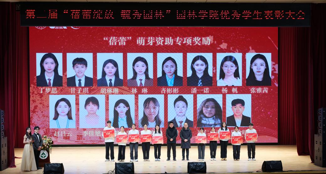 表彰大会在全场合唱《前进,东北林业大学》的歌声中圆满落幕。2022级风景园林专业硕士研究生张艺菲表示,参加本次表彰大会,内心充满了无比的激动,希望每一颗蓓蕾都能在阳光雨露中绚丽绽放,共同书写属于我们园林人的辉煌篇章;2024级风景园林三班谢瑞表示,很荣幸作为“蓓蕾”萌芽专项资助的领奖人参加本次表彰大会,在今后的生活中会继续向下扎根、向上生长,用自己的青春和汗水描绘出园林事业的美好未来。