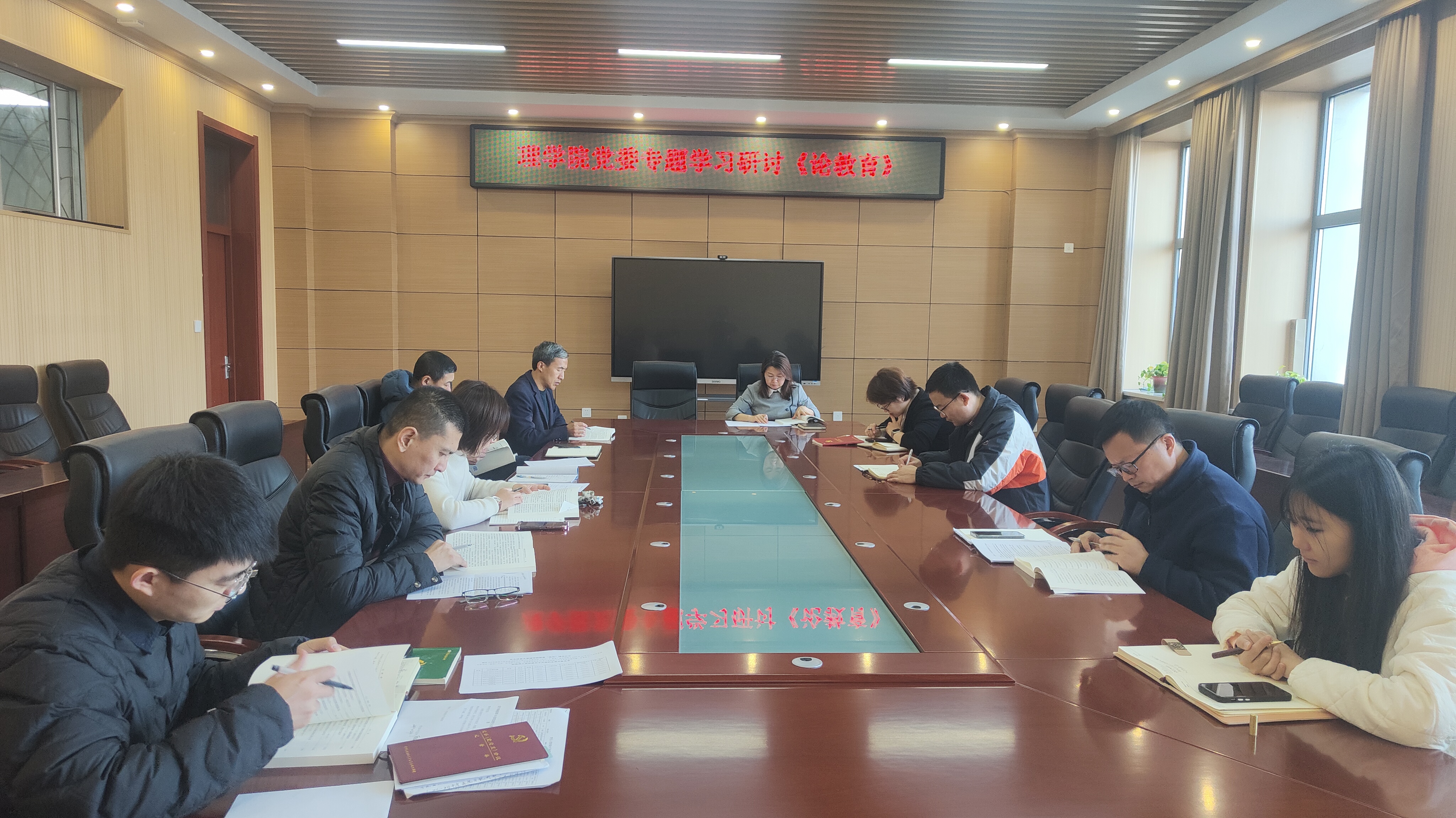 为深入学习贯彻习近平总书记关于教育的重要论述,把党的教育方针全面贯彻到学院育人工作各方面,近日,理学院召开党委理论学习中心组(扩大)学习会议,专题学习《论教育》一书。学院领导班子成员、党委委员、教工党支部书记、学生党支部书记参加本次学习会。会议由学院党委书记李玉荣主持。