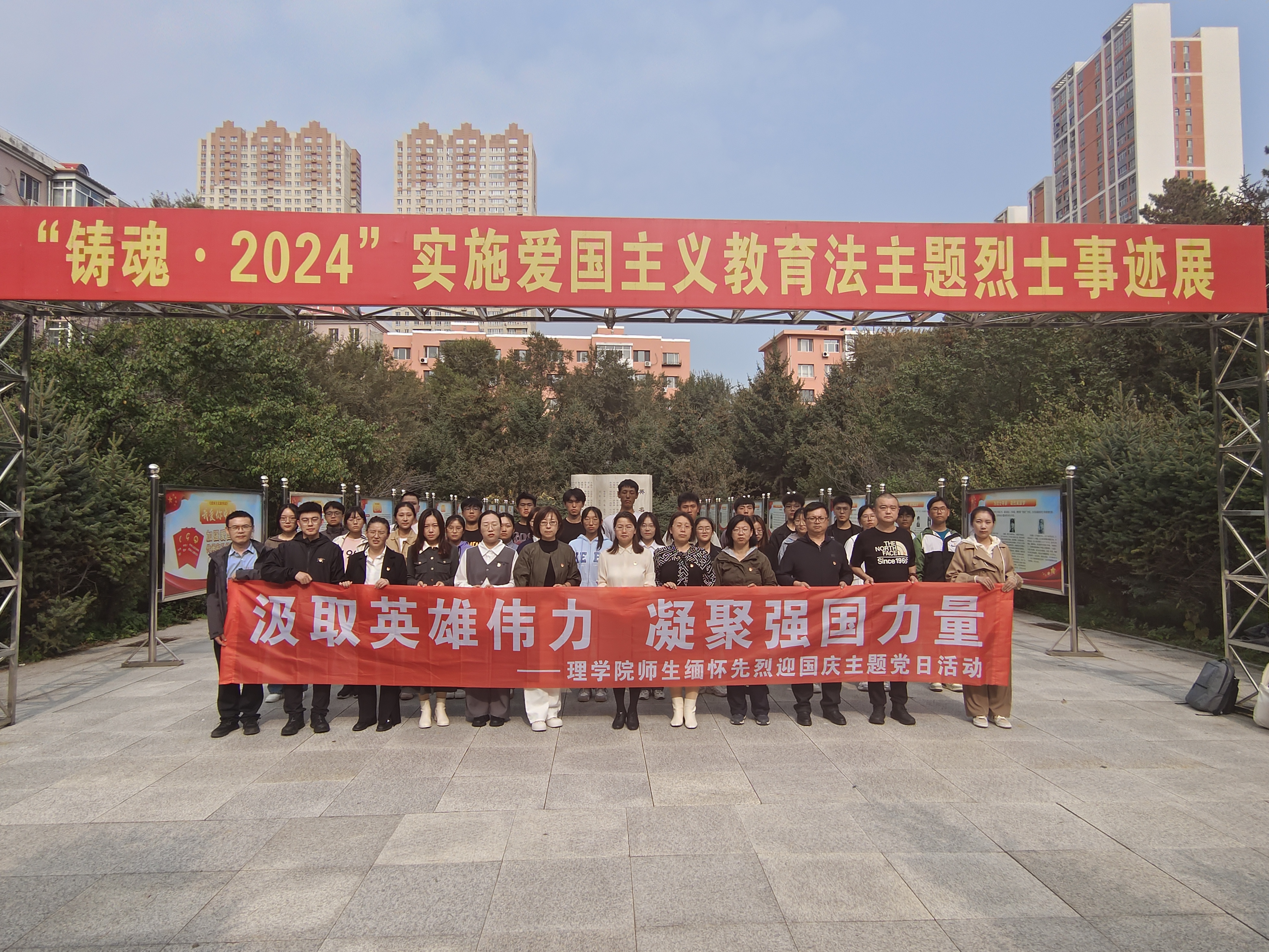 今年是中华人民共和国成立75周年,9月30日是我国第十一个烈士纪念日。为进一步引导广大师生缅怀革命先烈,弘扬革命精神,厚植爱党爱国情怀,9月29日,理学院教工党支部与学生党支部的师生代表共同前往哈尔滨市烈士陵园开展“汲取英雄伟力 凝聚强国力量”主题党日活动。