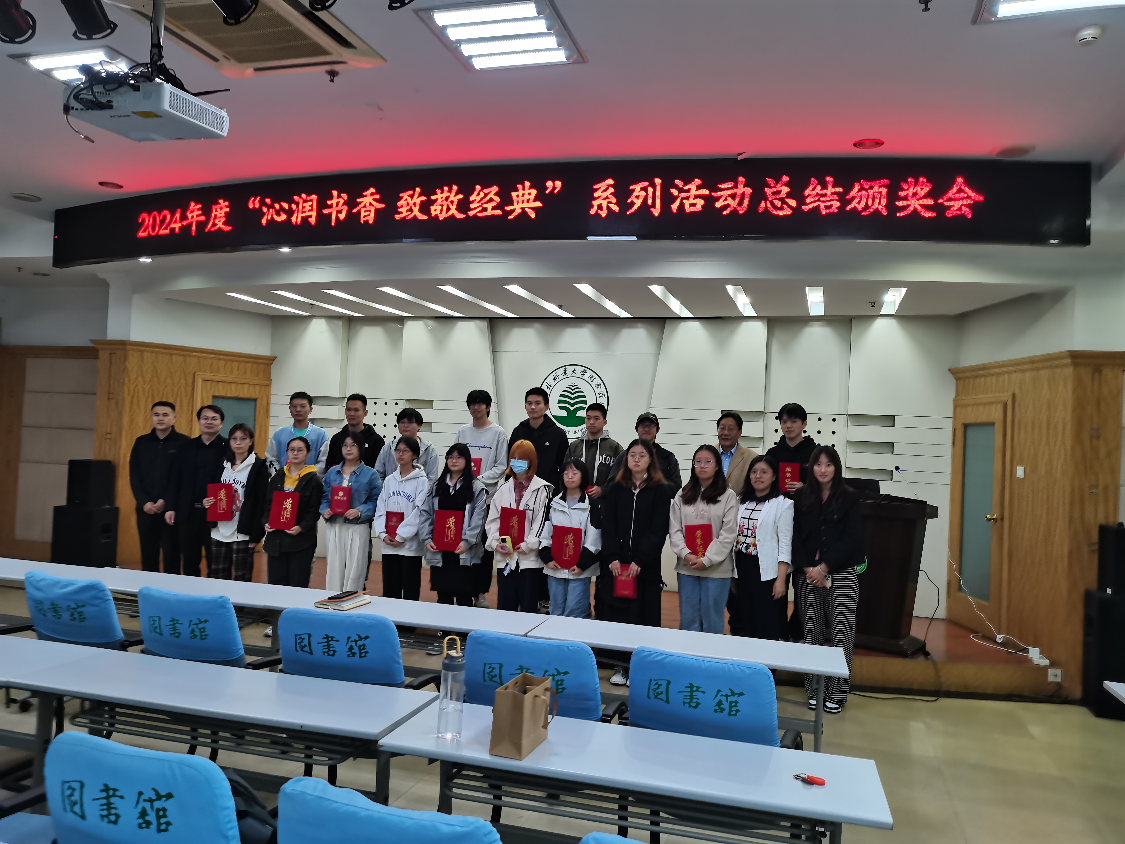 9月25日下午,图书馆在多功能厅召开了“沁润书香 致敬经典”系列活动总结表彰会。图书馆主要领导、数据商负责人、获奖读者代表及学生读者近80余人参会。会议由阅读推广部主任刘明主持。