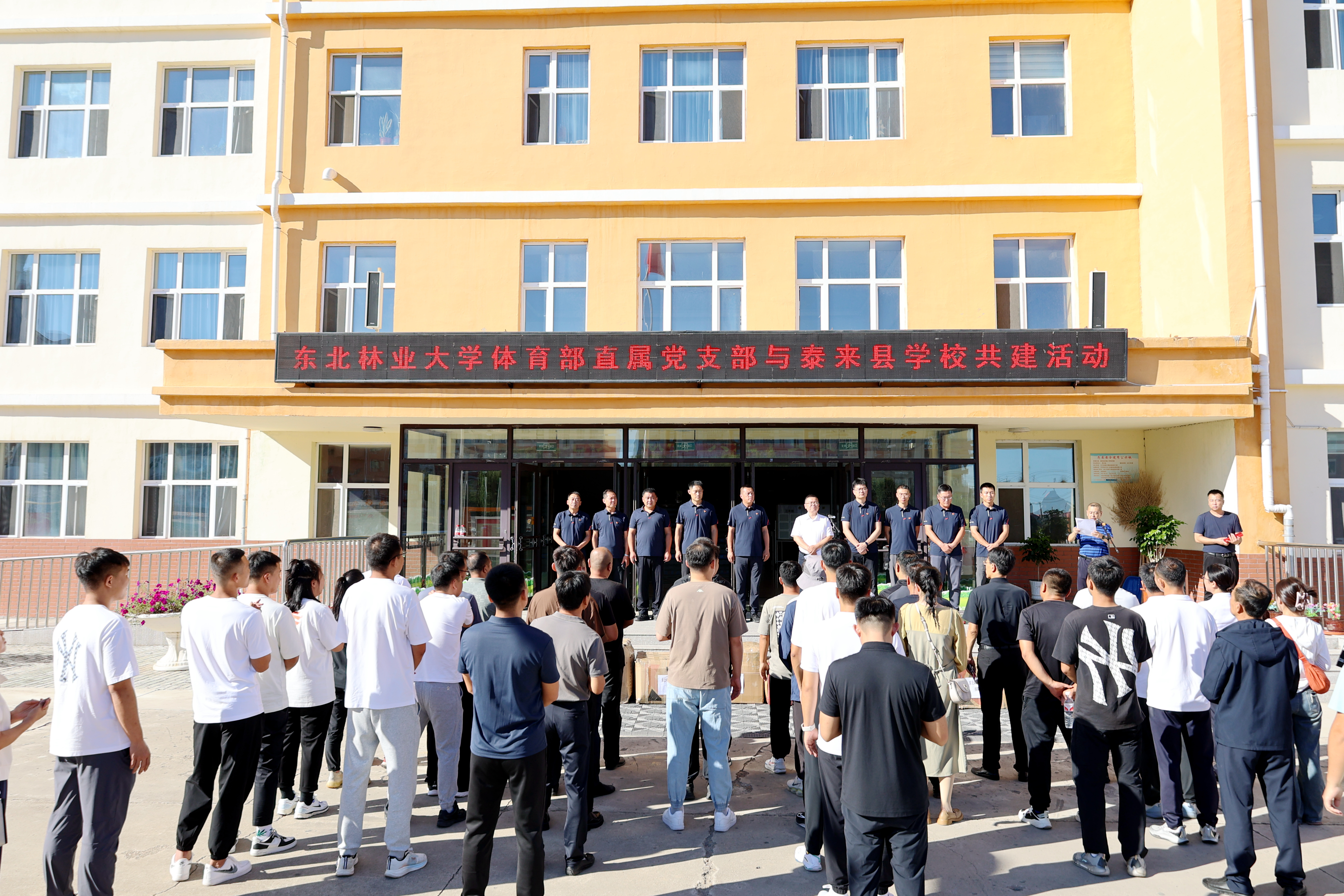 9月2日至3日,学校体育部直属党支部赴齐齐哈尔泰来县实验小学、宏程村开展支部共建活动,以实际行动贯彻落实习近平总书记关于乡村全面振兴的重要指示批示精神,推动学校教育思想与高质量发展大讨论走深走实。体育部直属党支部书记关大鹏,体育部副主任王孝健、杨林光等一行9人参加活动。
