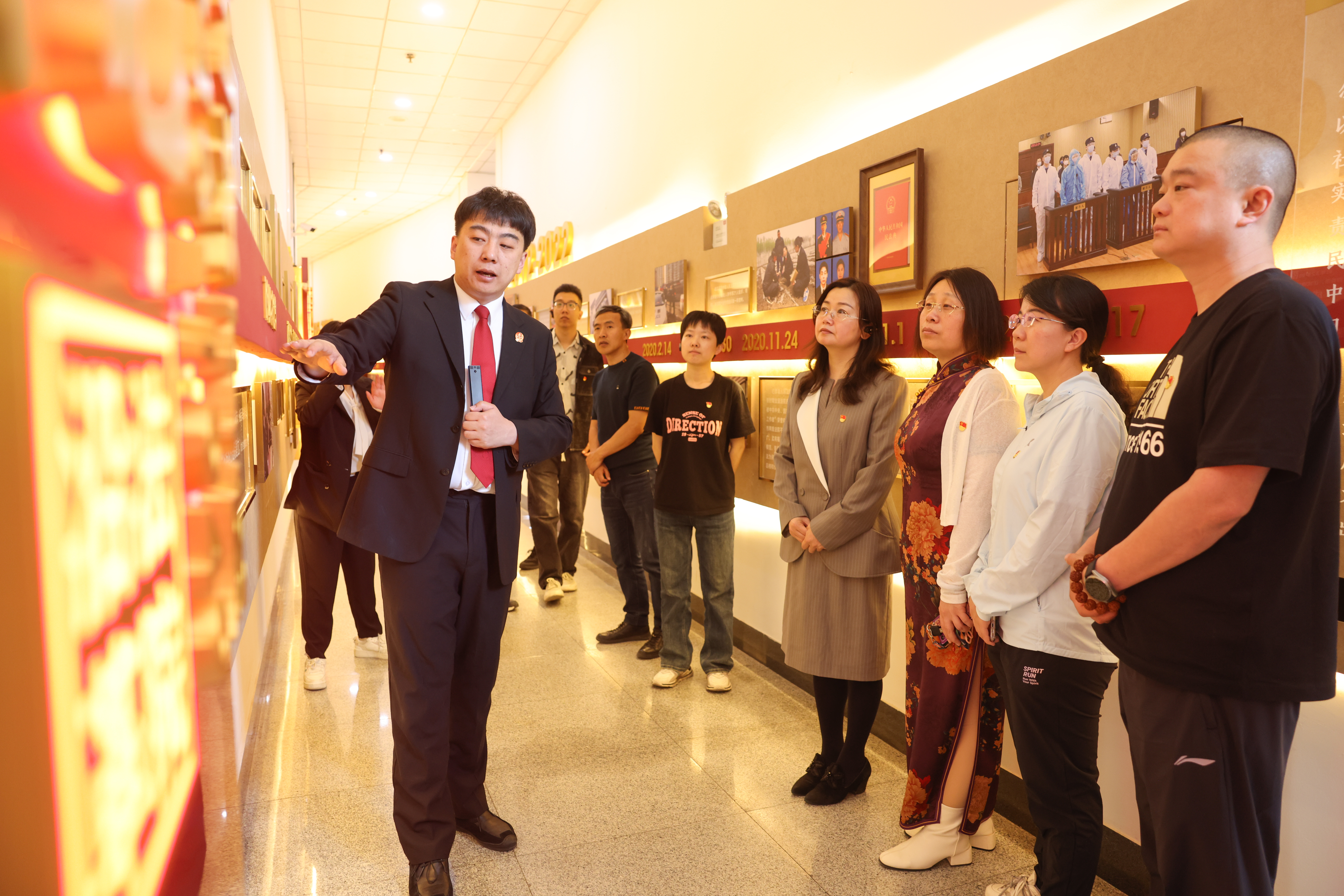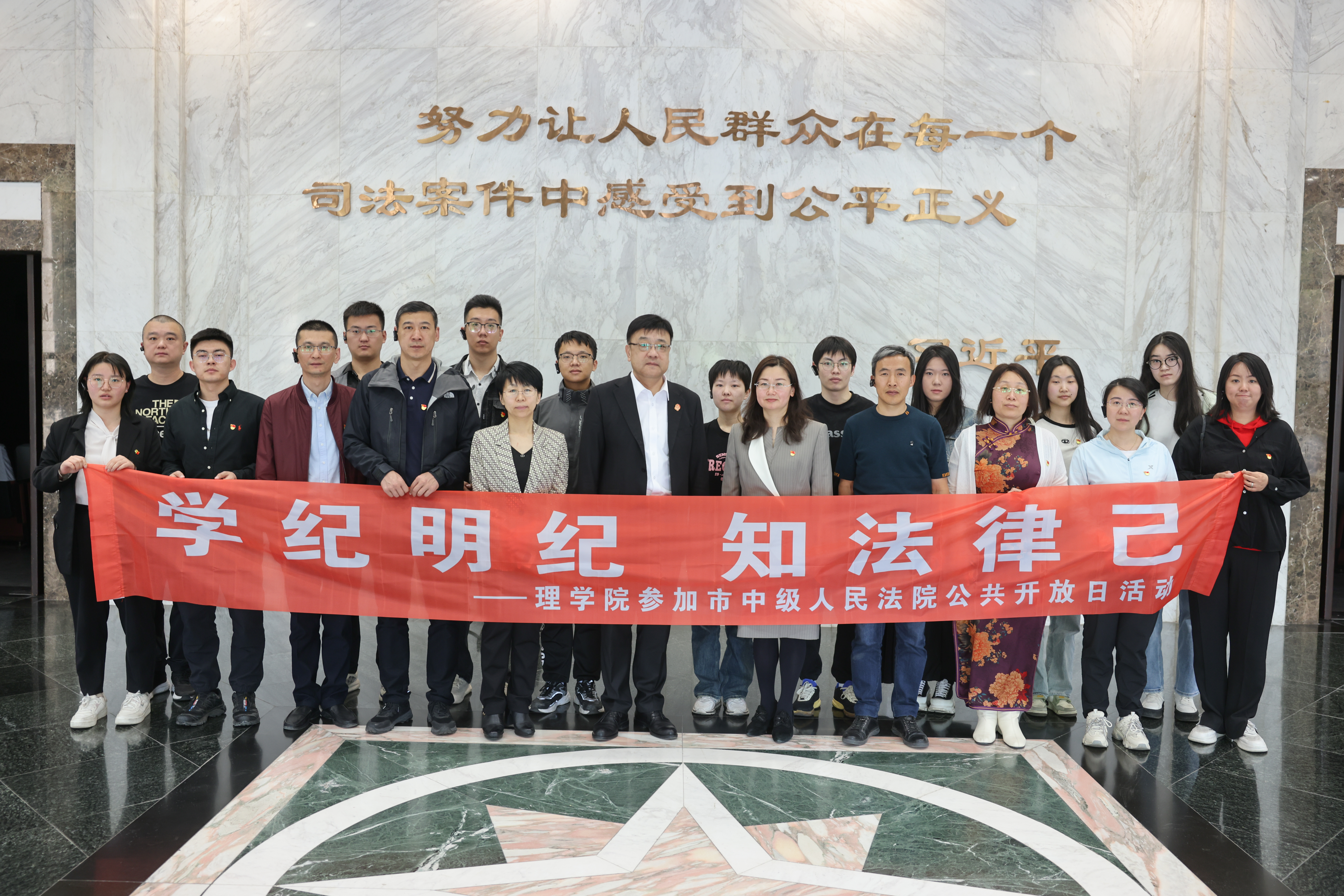 5月8日上午,理学院党委理论学习中心组(扩大)暨党纪学习教育读书班走进哈尔滨市中级人民法院,开展“学纪明纪 知法律己”党纪学习教育主题活动。市法院党组成员、政治部主任王涛,政治部宣传处处长于巧丽,我校2004级校友、宣传处所行与理学院师生共同参观交流。