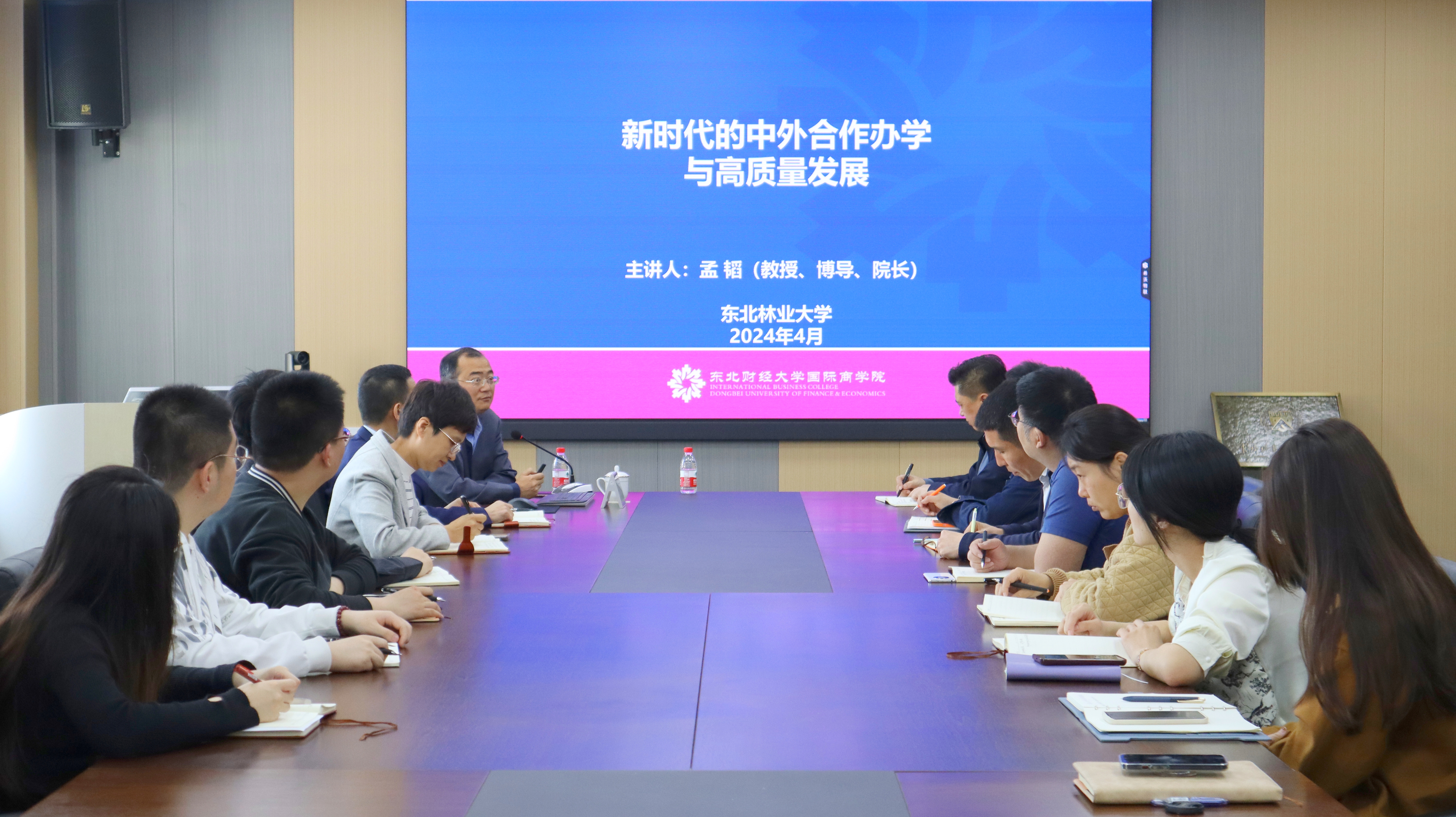 为深入开展教育思想与高质量发展大讨论,推进中外合作办学水平提升,4月24日上午,全国中外合作办学联席会秘书长、东北财经大学国际商学院院长孟韬教授来校作主题为“新时代的中外合作办学与高质量发展”的专题讲座,奥林学院全体教职工参加。