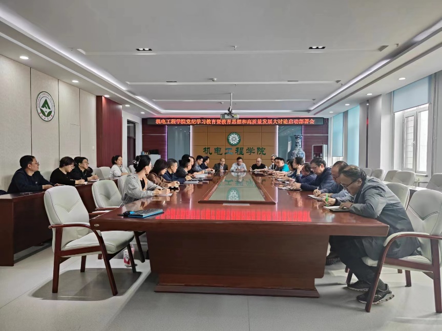 4月22日下午,机电工程学院在成栋楼713会议室召开专题会议,启动部署党纪学习教育,结合学院实际和重点工作布置教育思想和高质量发展大讨论相关任务。学院两委委员、领导班子、各专业(教研室、中心)负责人、教工党支部书记、组织员、辅导员代表等参加会议。会议由院长朱良宽主持。