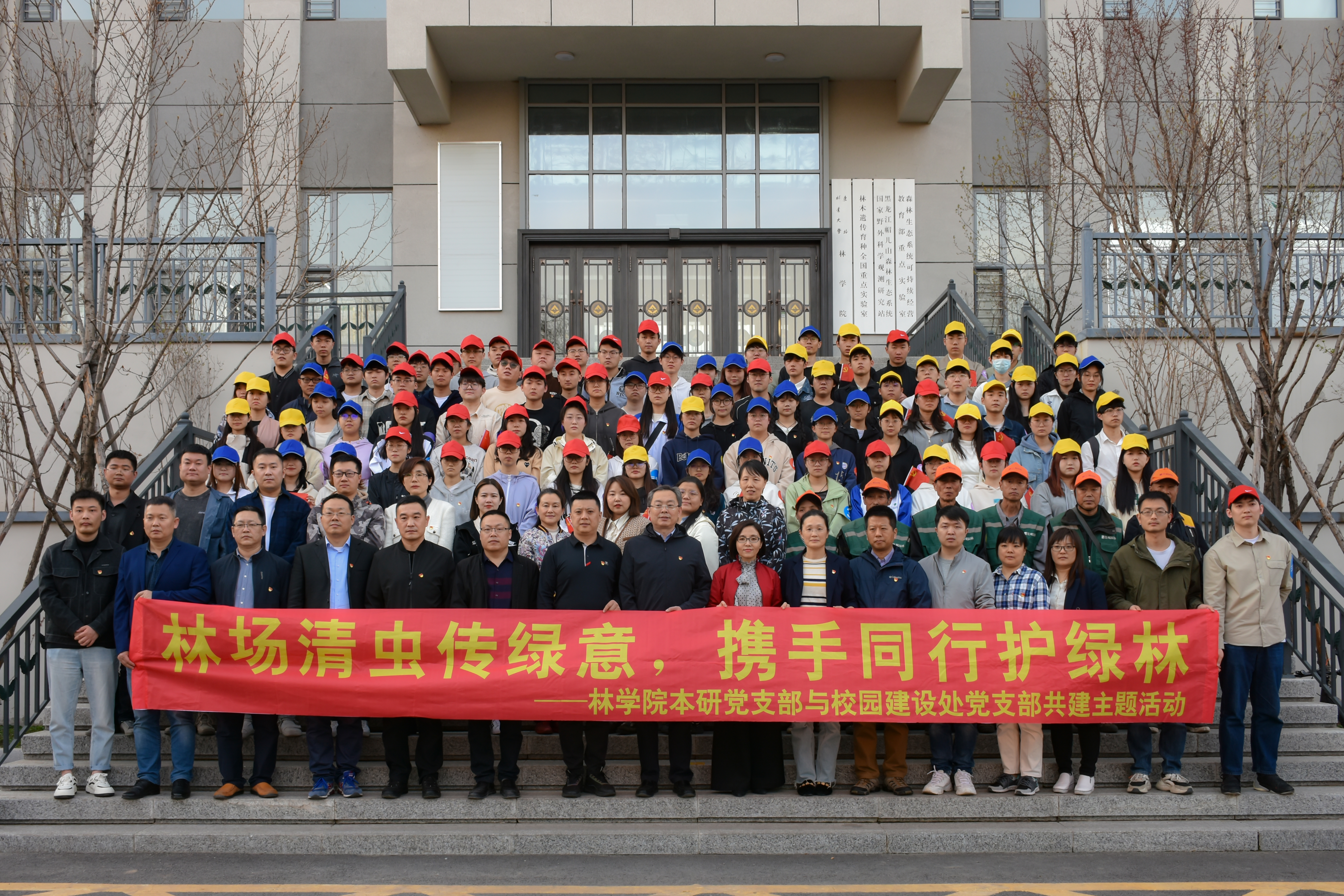 深化绿色发展,夯实生态基石。为深入践行习近平生态文明思想,搭建劳动教育平台,激发支部活力,4月17日下午,林学院本研学生党支部与校园建设处党支部联合开展“林场清虫传绿意,携手同行护绿林”主题支部共建活动。林学院党委书记宋妍、校园建设处领导班子成员及支部全体党员、森林保护学教工党支部教师党员代表参与此次活动。活动由林学院党委副书记、副院长杨冰雨主持。