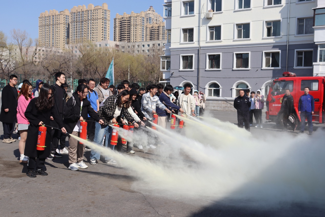 活动中,王宇新认真、耐心、细致地为同学们演示并讲解了灭火器的正确使用方法,以及在火灾发生时,如何迅速而准确地运用灭火器进行灭火,并强调了安全操作的重要性。